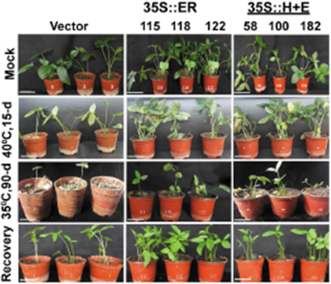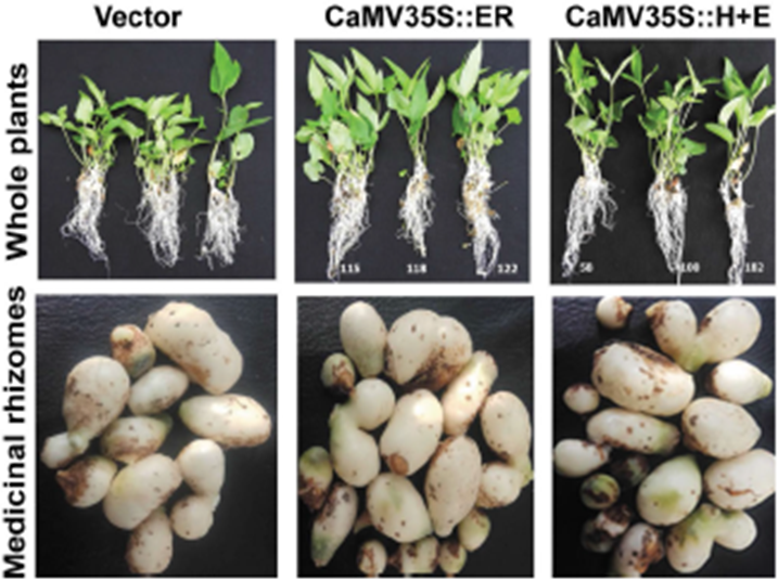 为探索温度是否是引起半夏休眠的关键因子,Juneidi博士将来源于拟南芥的耐高温基因导入到半夏,获得的半夏植株在夏天40度高温下显示出顽强的生长能力,比普通半夏生长时间更长。改良的半夏能较好听过武汉夏天的高温,生长时间变长了,自然产量也得到提高,活性物质的含量也有显著提升。本研究为进一步指导田间分离筛选耐热半夏品系打下了坚实基础,可能是未来湖北以及长江沿线及以南地区半夏优势品种选育的一个方向。